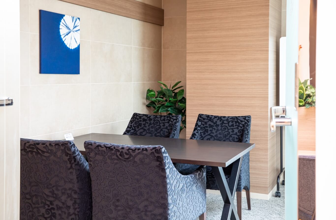 即日入居も可能SOHOプラザは、各部屋の雰囲気に合わせたデスクやチェアが配置された家具付きオフィスです。ネットも接続済、貸会議室、複合機なども完備され、即日入居が可能です。将来的にも、ご利用人数の変動に応じたオフィス移動が可能で、フレキシブルなビジネス環境を提供しています。